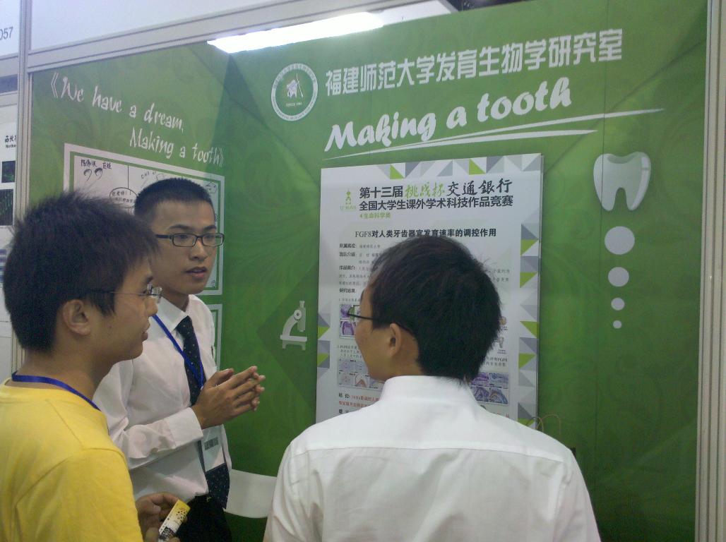 其中,获得二等奖的2项作品是:《闽台文化产业专业人才培养模式比较及其互补性前瞻》(文学院,作者:文学院朱春洁、蔡惠君、林辰靓、郑宇然、陈晨、赵呈霁、潘茸绒,指导老师:文学院李诠林、葛桂录、周云龙、尚光一);《FGF8对人类牙齿器官发育速率的调控作用》(生命科学学院,作者:生命科学学院庄桂、陈伟洪,指导老师:生命科学学院胡雪峰、郑若男、张彦定)。大赛第13期简报还以《“小闽哥”携手“阿台妹”:两岸文化产业专业探索》为题,专文报道了爱体育网_爱体育网(中国)文学院作品,并给予高度评价。