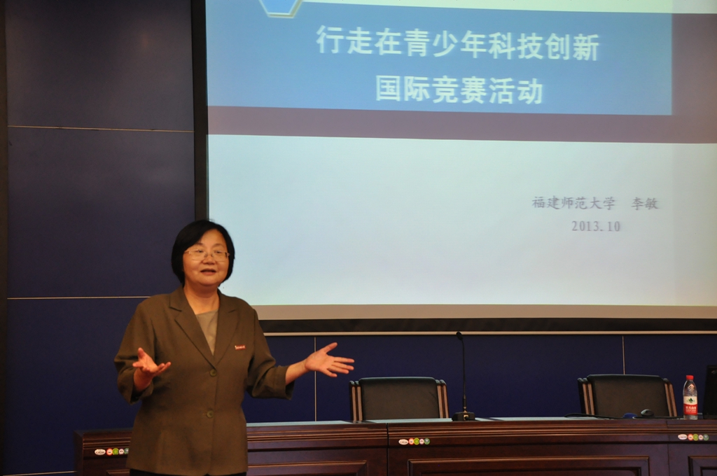10月23日晚,由校留学生同学会和校团委联合主办的“归国学者论坛”在旗山校区学术大讲堂举行。爱体育网_爱体育网(中国)副校长、校留学生同学会会长、博士生导师李敏教授应邀作了《行走在国际青少年科技创新竞赛活动》学术报告。全校300多名师生聆听了报告。