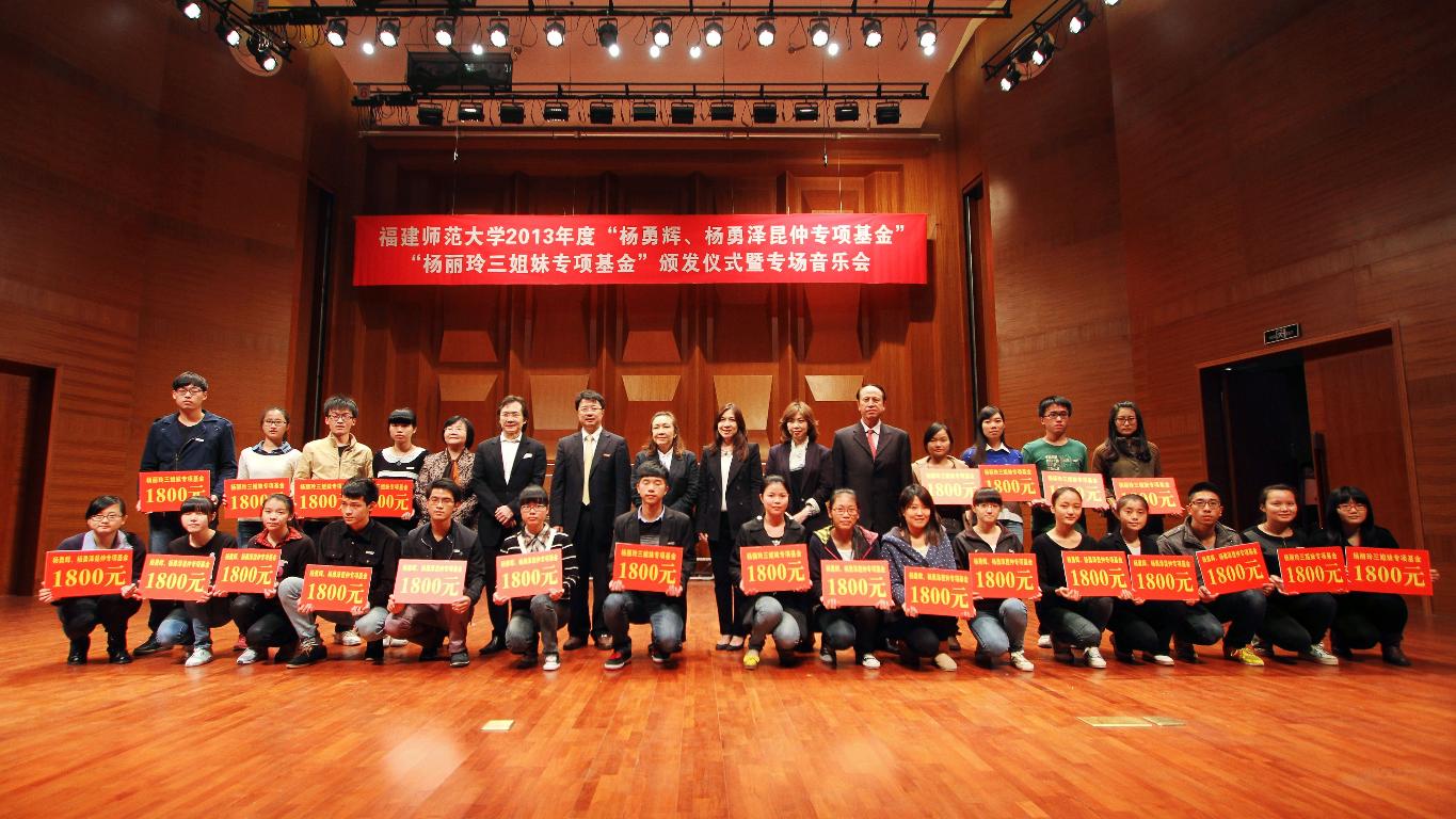 颁发仪式于11月28日在旗山校区音乐厅举行。印尼艺成集团董事长、印尼艺成慈善基金会主席杨勇辉,印尼艺成集团董事、印尼艺成慈善基金会总经理杨丽玲,印尼艺成集团董事、印尼艺成慈善基金会杨美玲女士、杨慧玲女士,印尼艺成慈善基金会理事长黄新民,爱体育网_爱体育网(中国)校长黄汉升,学校有关部门负责人,师生代表等近600人出席了仪式。与会领导和来宾为556名受助学生代表颁发了资助款。