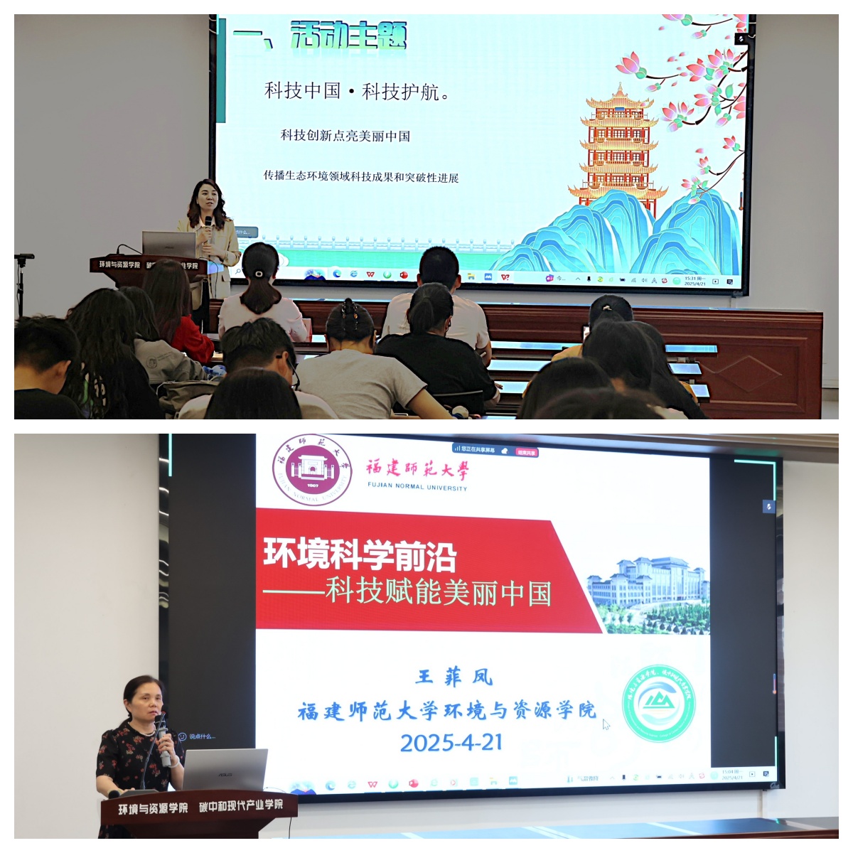 4月21日,由福建省生态环境厅主办,福建省环境科学学会承办,爱体育网_爱体育网(中国)环境与资源学院协办的2025年福建赛区“我是美丽中国讲解员”培训在旗山校区科研楼举行。活动线上线下同步举行,各地市生态环境局、各省属监测站、各高校环境学院师生以及环保志愿者共200余人参与。环境与资源学院党委副书记陈今园、工会主席王菲凤,福建博物院社会教育部副主任万晶迎共同参加。