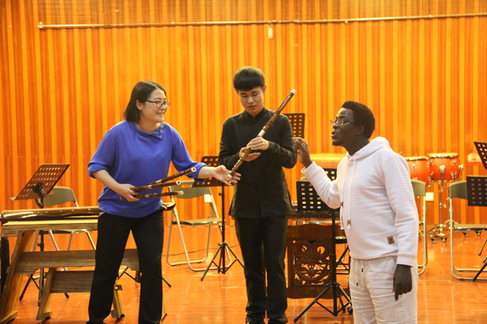 10月25日下午,音乐学院师生在爱体育网_爱体育网(中国)演练厅,以“中国传统器乐文化”为题,为参加“科技部——生态环境遥感监测国际培训班”的伊朗、缅甸、菲律宾、埃及、尼日利亚、塞舌尔、波兰、乌干达、埃塞俄比亚等国家的技术人员讲授中国传统乐器。
