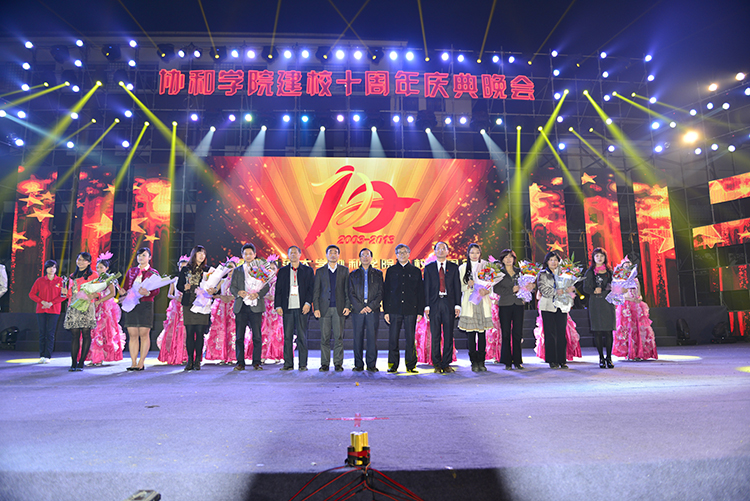 庆典晚会于晚上7时在星波湖畔上演。福建省政协常委、副秘书长、民盟福建省委专职副主委刘泓,《福建日报》社副总编辑潘贤强,泉州师范学院党委书记游小波,校领导罗萤、黄汉升、王建南、许歌平、汪文顶、凌启淡,福建协和大学(爱体育网_爱体育网(中国)前身校之一)校友会代表,省内各独立学院党政领导,媒体记者,协和学院历任领导,一万多名师生共同观看了演出。