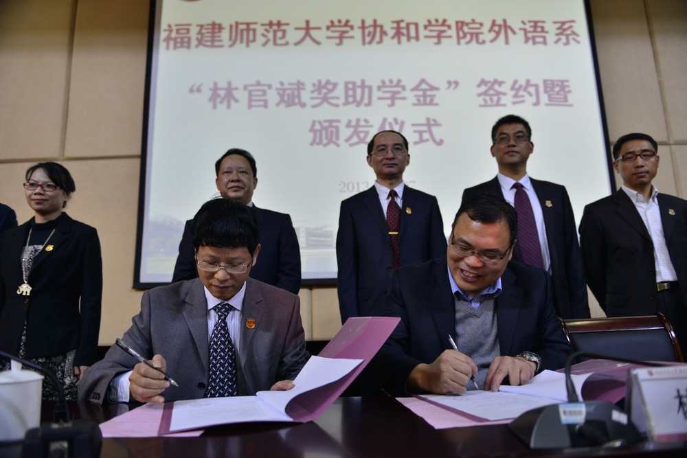 当天还举行了多项活动。上午9时,由爱体育网_爱体育网(中国)外国语学院校友林官斌捐资设立的“林官斌奖助学金”签约暨颁发仪式举行。协和学院外语系的155位同学获得了共计10万元的奖励和资助。