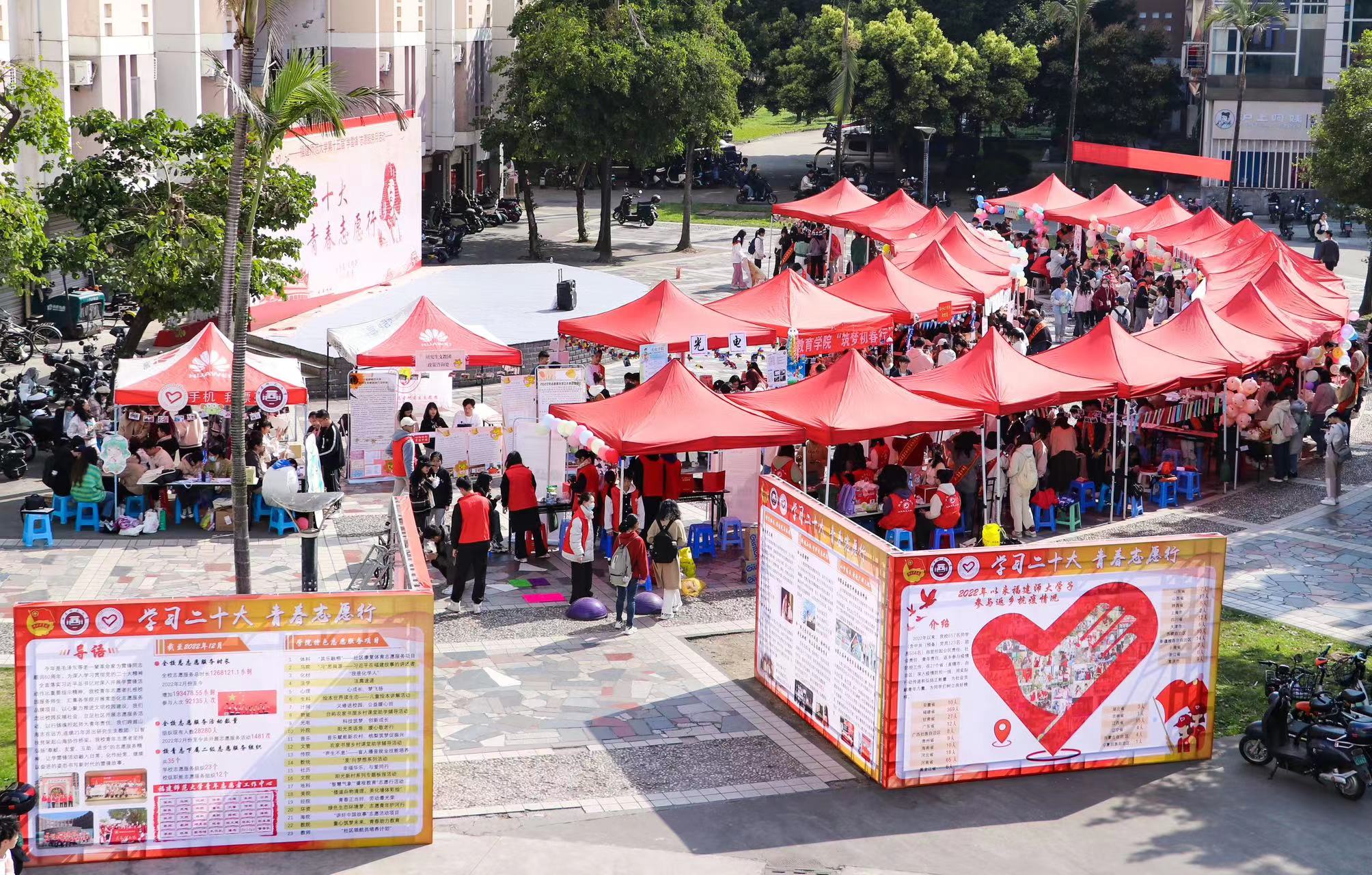 3月5日是第60个“学雷锋纪念日”和第24个“中国青年志愿者服务日”,由校团委、文明办主办,校青年志愿者工作中心、各学院青协共同承办的“学习二十大,青春志愿行”志愿服务项目成果展在旗山校区共青团广场举办。