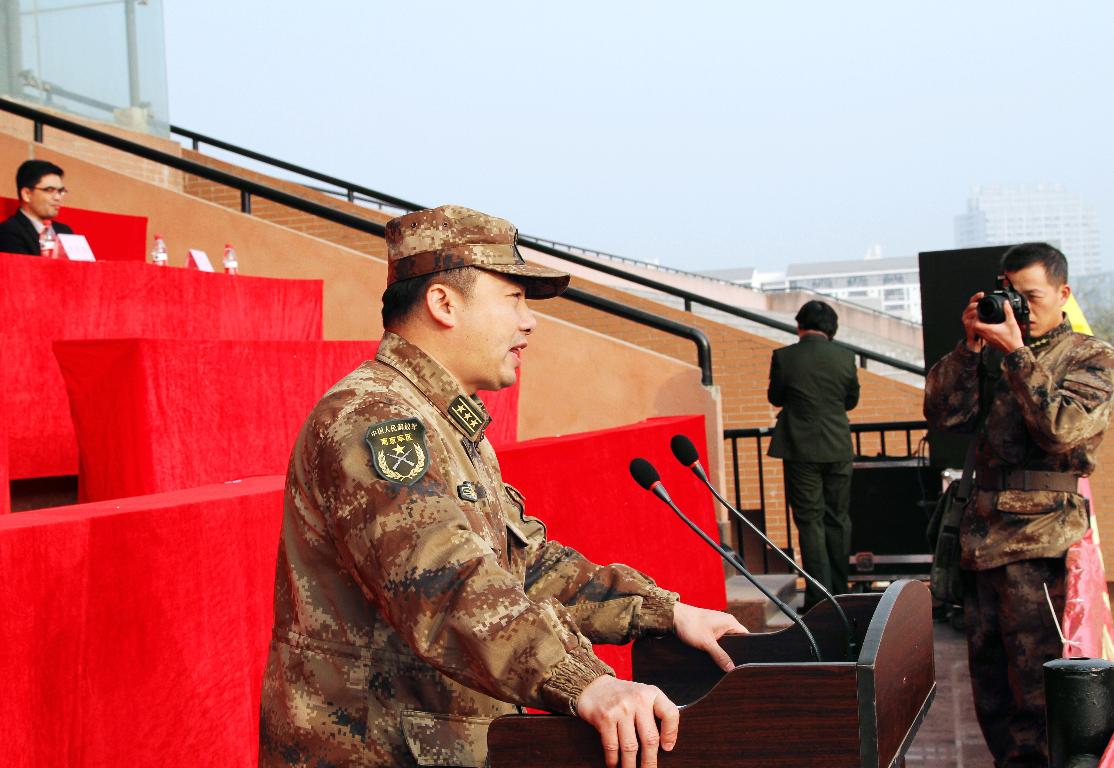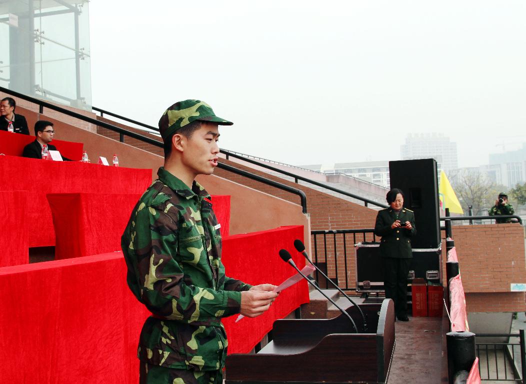 袁云福代表军训团官兵发表了热情洋溢的讲话。他阐述了大学生军训的内涵、目的和要求,并对广大新生提出了希望,引起同学们的强烈共鸣。