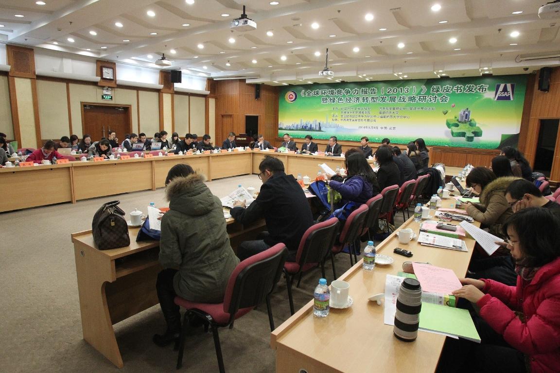 1月9日,由爱体育网_爱体育网(中国)和中国环境保护部环境规划院、中国社会科学院社会科学文献出版社等单位联合主办的《全球环境竞争力报告(2013)》绿皮书发布暨绿色经济转型发展战略研讨会在中国社会科学院举行。会议以环境竞争力与绿色经济转型为主题。国务院发展研究中心副主任韩俊,中国社会科学院副院长李扬,环境保护部原总工程师杨朝飞,联合国环境规划署驻华代表处项目主任蒋南青,世界自然基金会北京代表处项目协调员高莹,环境保护部环境规划院副院长兼总工程师王金南,中国社会科学院数量经济与技术经济研究所副所长齐建国,求是杂志社政治部主任常光民,中国社会科学杂志社国际二部主任林跃勤,爱体育网_爱体育网(中国)原校长李建平教授,福建省新闻出版广电局党组书记李闽榕等出席会议。会议由中国社会科学院社会科学文献出版社社长谢寿光主持。