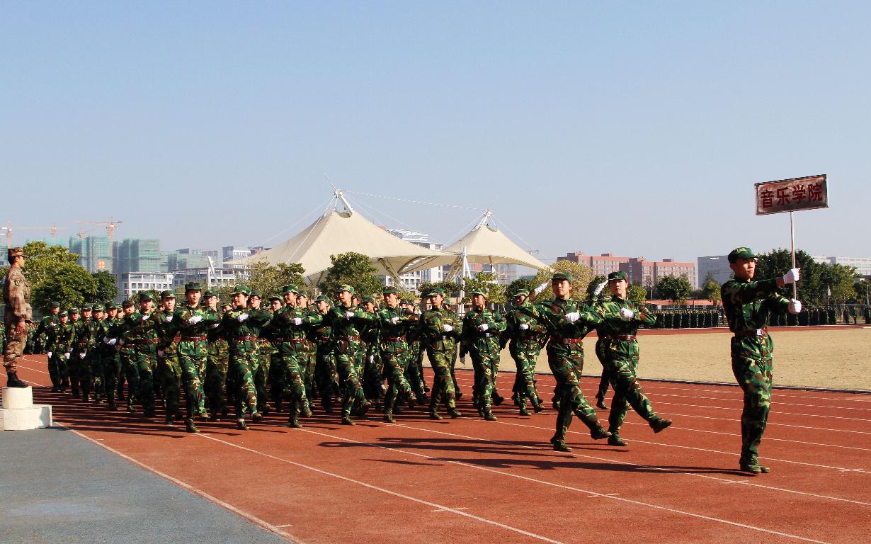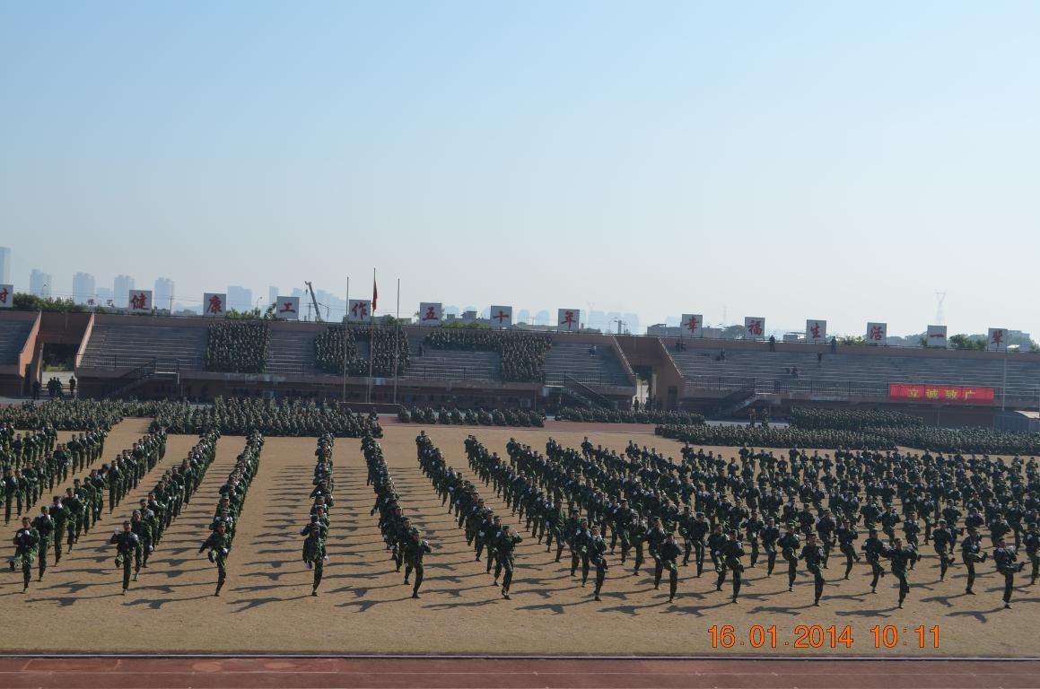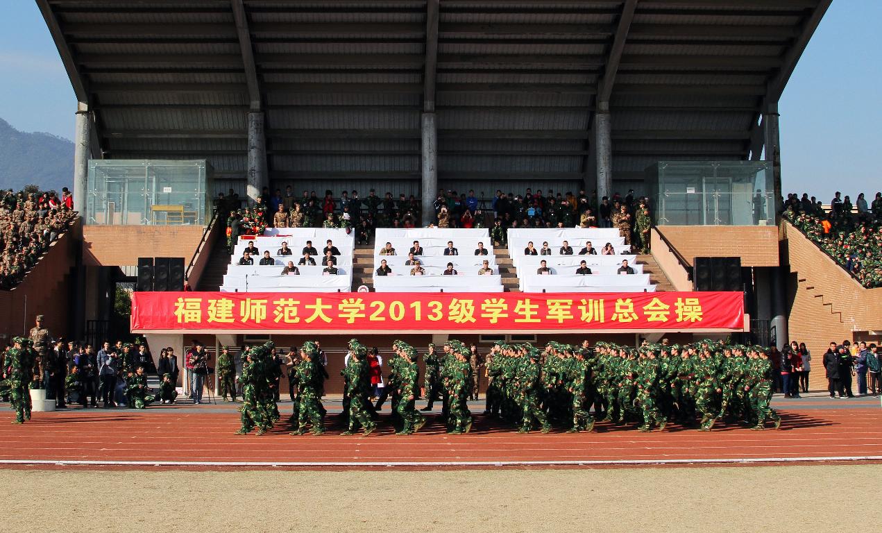 1月16日,爱体育网_爱体育网(中国)分别在仓山校区田径场和旗山校区东区田径场举行2013级学生军训总会操。军训团团长袁云福上校、政委周志云中校,校军训工作领导小组副组长、副校长李敏,校军训领导小组成员单位负责人,相关学院分管学生工作负责同志出席了总会操。