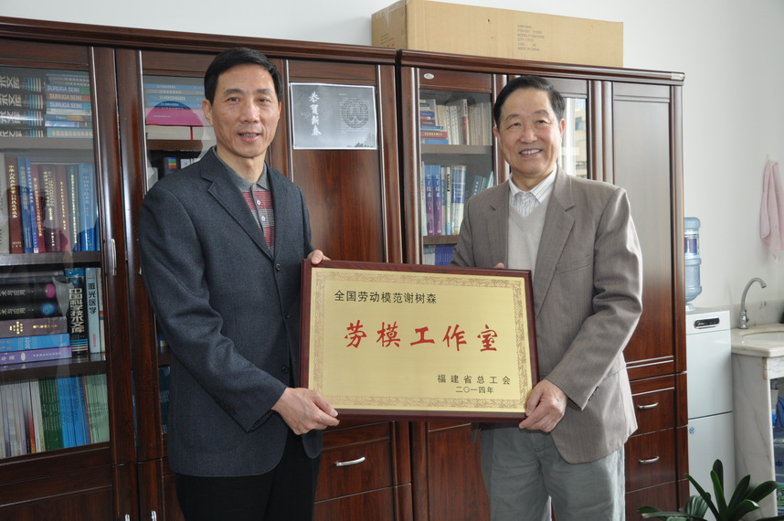 3月18日上午,省总工会党组书记、副主席陈震,福州市总工会党组书记、副主席郑湘国,省总工会经济技术部部长王华、市总直属工会主席尤山一行到爱体育网_爱体育网(中国)为光电与信息工程学院谢树森教授工作室授省级“劳模工作室”牌匾。参加授牌仪式的还有爱体育网_爱体育网(中国)副校长凌启淡,校工会有关负责人,光电与信息工程学院党政工领导以及“谢树森劳模工作室”的全体成员。