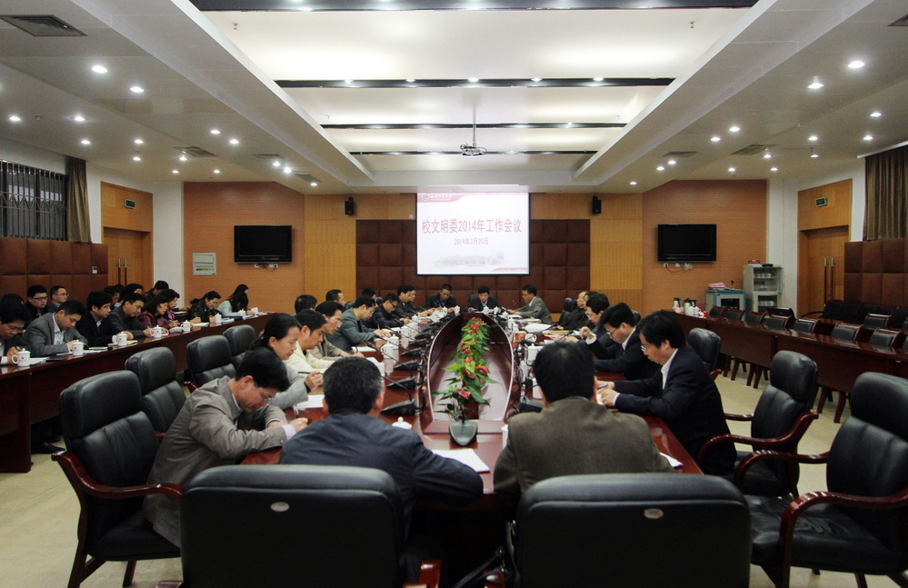 会议于3月20日上午在旗山校区第十会议室举行。校党委书记、校文明委主任黄汉升,副校长、校文明委主任王长平,校党委副书记、校文明委副主任王建南,校长助理郭警修,校文明委全体委员,各单位党委、党总支、直属党支部书记参加了会议。会议由王长平主持。