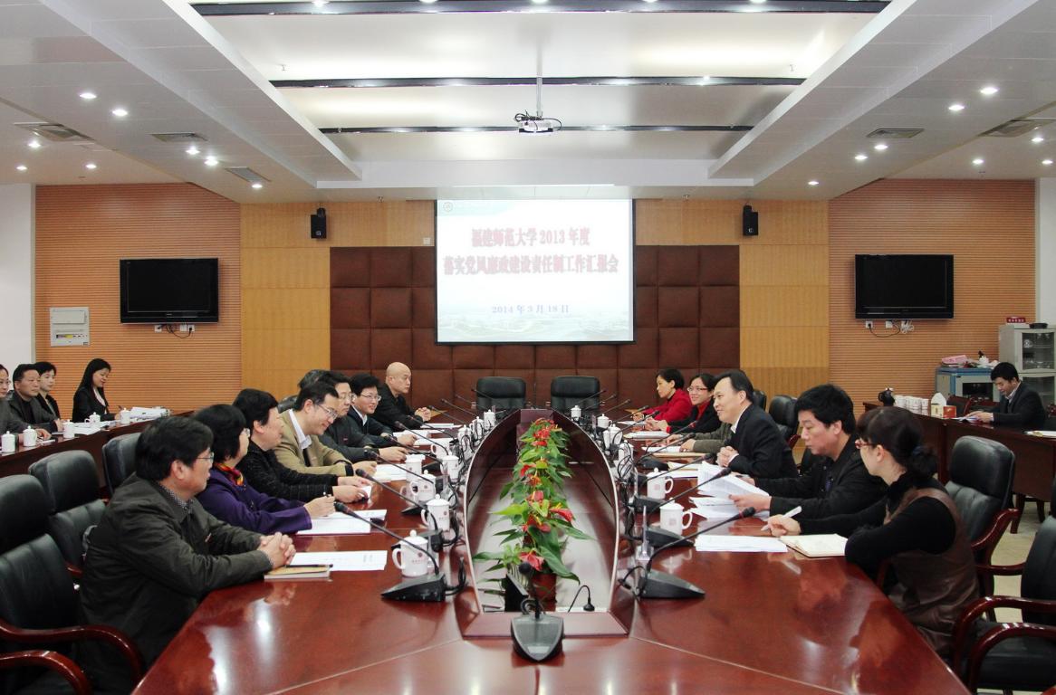 3月18日上午,省教育厅党组副书记、副厅长黄红武一行六人,莅临爱体育网_爱体育网(中国)检查2013年度落实党风廉政建设责任制工作情况。校领导黄汉升、王长平、王建南、许歌平、汪文顶、李敏、许明,校长助理郭警修,校党风廉政建设领导小组成员,参加民主测评师生代表,以及纪检监察审计专职干部参加了检查见面会。