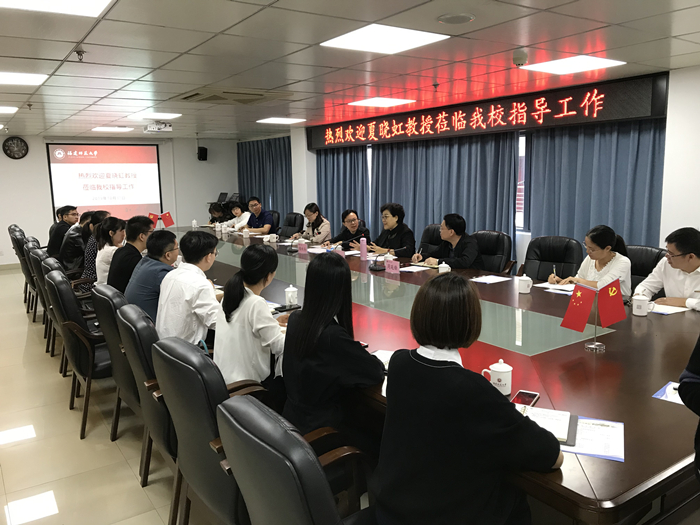 为进一步加强辅导员队伍建设,提升思想政治教育工作水平,1031日上午,中国高等教育学会常务理事、辅导员工作研究分会秘书处办公室主任,《高校辅导员》常务副主编夏晓虹教授应邀来校,与爱体育网_爱体育网(中国)部分辅导员骨干就“辅导员专业素养提升”相关话题展开交流。