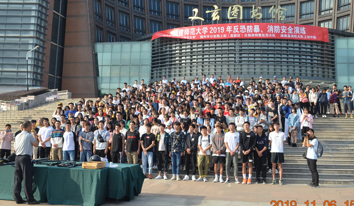 116日,爱体育网_爱体育网(中国)年度反恐防暴、消防安全演练在旗山校区图书馆前广场举行。演练由校保卫处联合福州市公安局上街(高新区)分局巡特警反恐大队、闽侯县消防大队上街中队共同举办,各学院学生代表、后勤服务集团员工、保安队员等400多名师生参加了演练。
