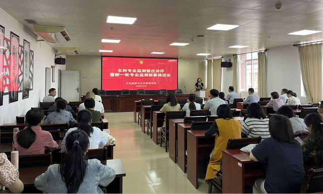 近日,文化旅游与公共管理学院组织召开本科专业监测整改讲评暨新一轮专业监测部署推进会。院长谢宏忠、副院长张廷君、各专业负责人、系主任、副主任以及教师代表参加。会议由张廷君主持。