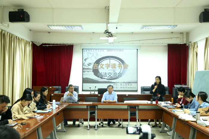 读书会上,林志强表示,古文字读书会在全国高校尚不多见,此举具有创新意义,希望同学们潜心学习,坚定文化自信、坚守静穆之心、坚持精心钻研,做出成绩与特色。他讲述了书法与古文字之间的联系,提出了“书家学者化”,指出书法要有古文字学的知识做支撑,让同学们端正学习书法的思想,指出书法要先求笔势、笔形,再求笔力,强调了古文字书法要长期坚持、久久为功。
