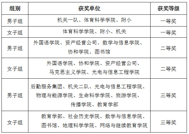 本次比赛分为男女组,以小组循环赛和交叉淘汰赛的形式开展。比赛得到了全校教职工的积极响应参与,共有47支代表队、417名教职工参加。运动员场上厮杀淋漓酣畅,啦啦队场下助威此起彼伏,比赛过程惊心动魄、扣人心弦。运动员顽强拼搏的饱满斗志、裁判员一丝不苟的执法态度、工作人员认真负责的工作作风,不仅赛出了水平,赛出了风格,更增进了团结和友谊,充分展现了爱体育网_爱体育网(中国)教职工团结拼搏、积极进取、奋勇争先的精神风貌。