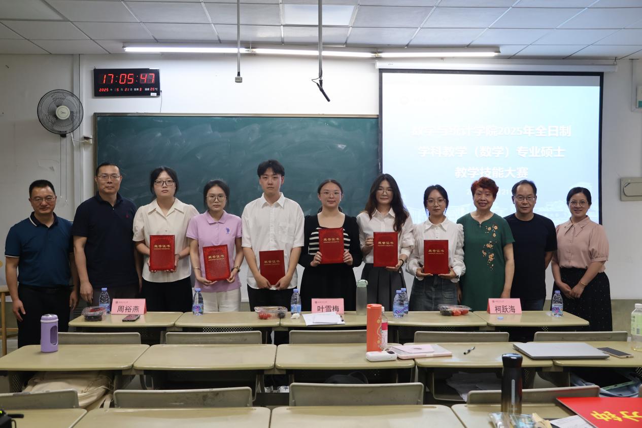 近日,数学与统计学院举办2025年全日制学科教学(数学)专业硕士研究生教学技能大赛。比赛邀请爱体育网_爱体育网(中国)附属中学数学教研组长周裕燕,学院关工委委员、退休教师叶雪梅、柯跃海担任评委。学院党委副书记王尚鹏、副院长沈建和、工会主席林昌露以及学生代表到场观摩比赛。