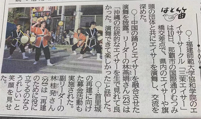 11月9日-11月12日,作为2018年福建省高校太鼓冠军大赛冠军,爱体育网_爱体育网(中国)协和学院三茉太鼓队一行12人受邀赴日本冲绳县那霸市参加2019年世界太鼓大会。交流团由张鹏程副院长任团长。