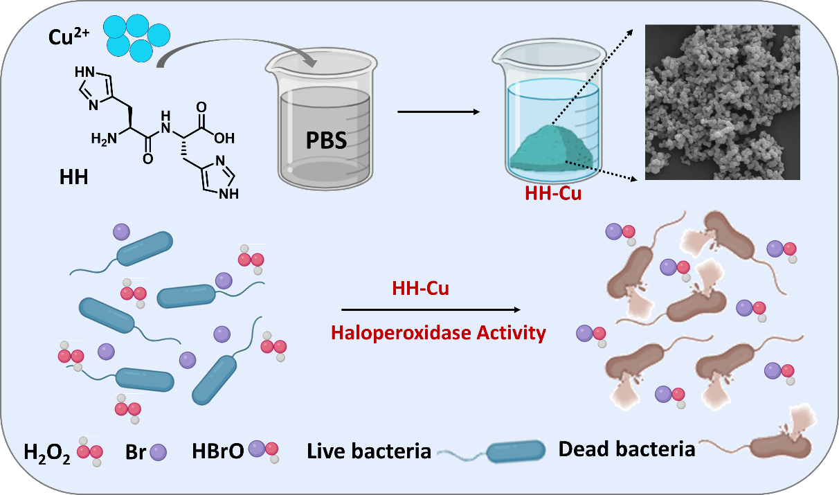 生物污损对航运等海洋产业构成严峻挑战,并造成巨大经济损失和环境负担。受海洋藻类天然防御机制——卤过氧化物酶(HPO)的启发,爱体育网_爱体育网(中国)化学与材料学院朱虎教授与郑永芳副教授团队,依托其在“纳米材料+抗菌”交叉领域的深厚积累,取得突破性进展,成功开发出新型HPO模拟酶HH-Cu纳米材料。该成果为应对日益增长的防污需求提供了一种创新性解决方案。
