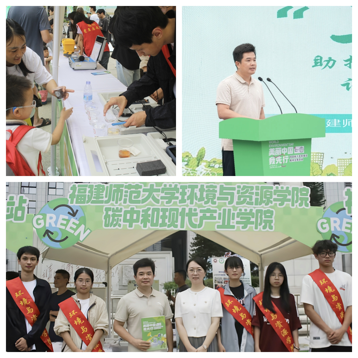 6月5日,“美丽中国我先行”六五环境日福州主场活动在福州工人文化宫举行。本次活动由福州市人大常委会城建环境工作委员会、福州市政协人口资源环境委员会、福州市委文明办、福州市生态环境局主办,环境与资源学院参与协办。学院党委副书记陈今园率队参与。活动现场,环境与资源学院精心设置环保市集摊位,围绕“解锁水的奥秘”主题开展互动体验,并在会上做了“美丽中国·高校先行”案例分享,分享了学院在科研探索、环保实践、志愿服务等方面的成果。(环境与资源学院、碳中和现代产业学院)