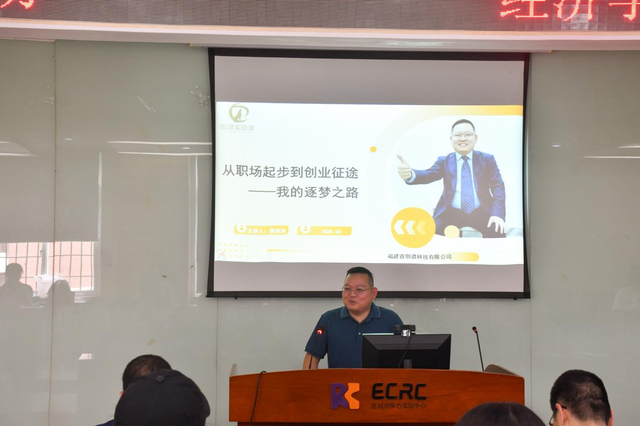 活动中,董清池先生以“从职场起步到创业征途——我的逐梦之路”为题,分享了初入职场的困惑与抉择,讲述了凭借自身行业洞察力开启创业的艰辛历程,强调了专业知识储备、终身学习及坚定信念的重要性,并和同学们积极互动。