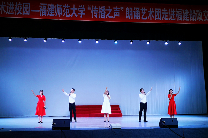 11月27日下午,福建省高雅艺术进校园——传播学院“传播之声”朗诵艺术团走进福建船政交通职业学院朗诵艺术活动在该校室内体育馆举行。传播学院党委书记刘舒平以及两校师生500余人共同观看了演出。