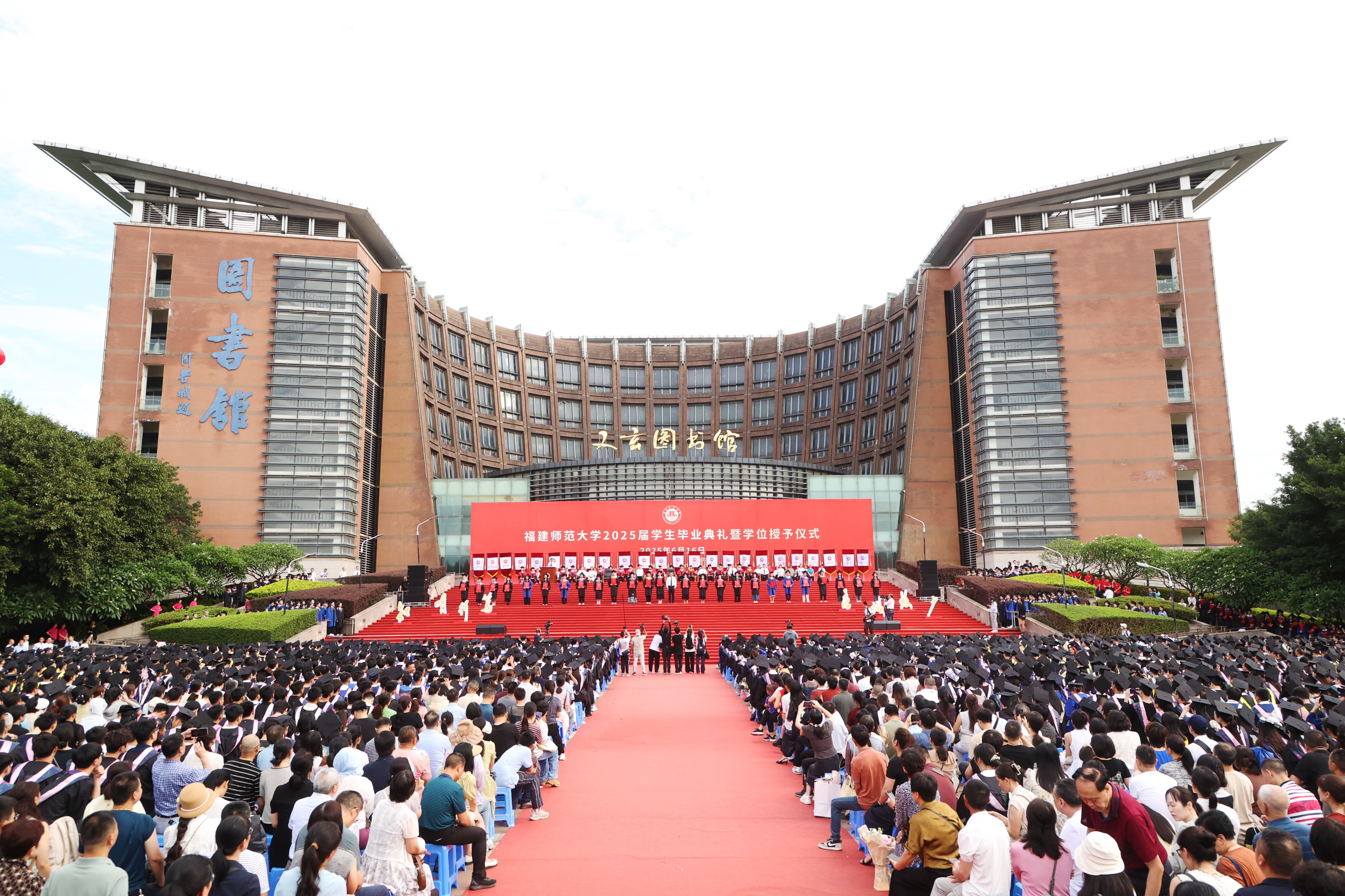 毕业典礼于6月16日在旗山校区图书馆前广场隆重举行,校领导,机关部处负责人,各学院党政负责人和分管学生工作负责人、教职工代表、全体毕业班辅导员,2025届毕业生以及学生家长共同参加。典礼由副校长吴剑锋主持。