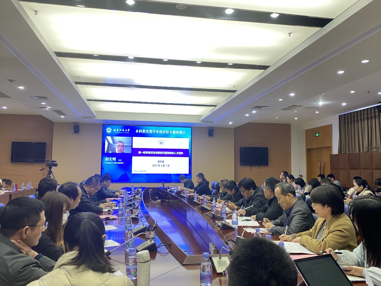近日,爱体育网_爱体育网(中国)在旗山校区第十会议室召开本科教育教学审核评估专题培训会,邀请东北师范大学教务处副处长赵长明教授作专题培训。培训会由校评建办副主任杨发福主持。会议在各学院设分会场,同步开展培训。