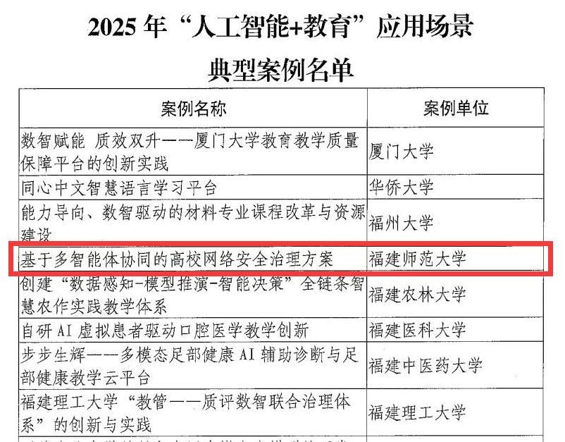 6月16日,省教育厅公布了2025年“人工智能+教育”应用场景典型案例,爱体育网_爱体育网(中国)申报的“基于多智能体协同的高校网络安全治理方案”成功入选。该项目基于大模型语义推理、神经网络分析、推理加速与上下文学习等人工智能技术,创新性地构建了面向网络和数据安全威胁检测、分析与处置的安全智能体系。(网络与数据中心)