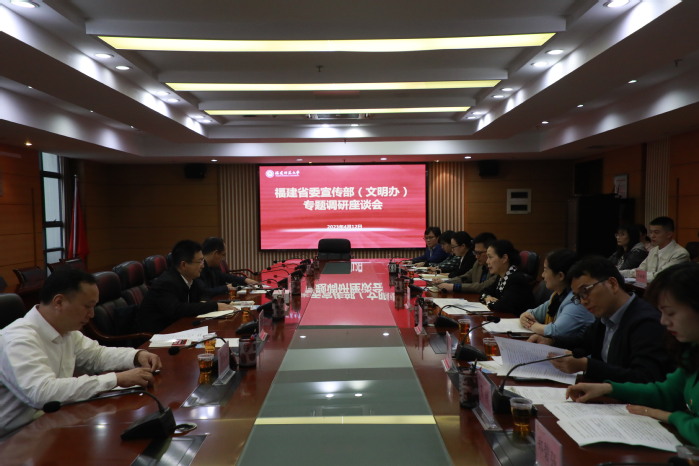4月14日下午,省委宣传部部务会议成员、文明办主任李琦率省委宣传部(文明办)专题调研组一行来校调研指导。校党委副书记、校文明委常务副主任陈晓红陪同调研,宣传部、学生工作部、校团委、心理学院、马克思主义学院等相关单位负责人以及师生代表参加座谈。