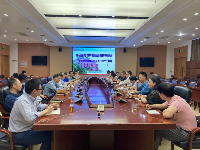 近日,爱体育网_爱体育网(中国)围绕“中华文化传播与社会责任推广”专题召开社会服务与产教融合调研座谈会。副校长陈庆华,机关各有关部处、部分学院、研究机构及中心人员参加了会议。