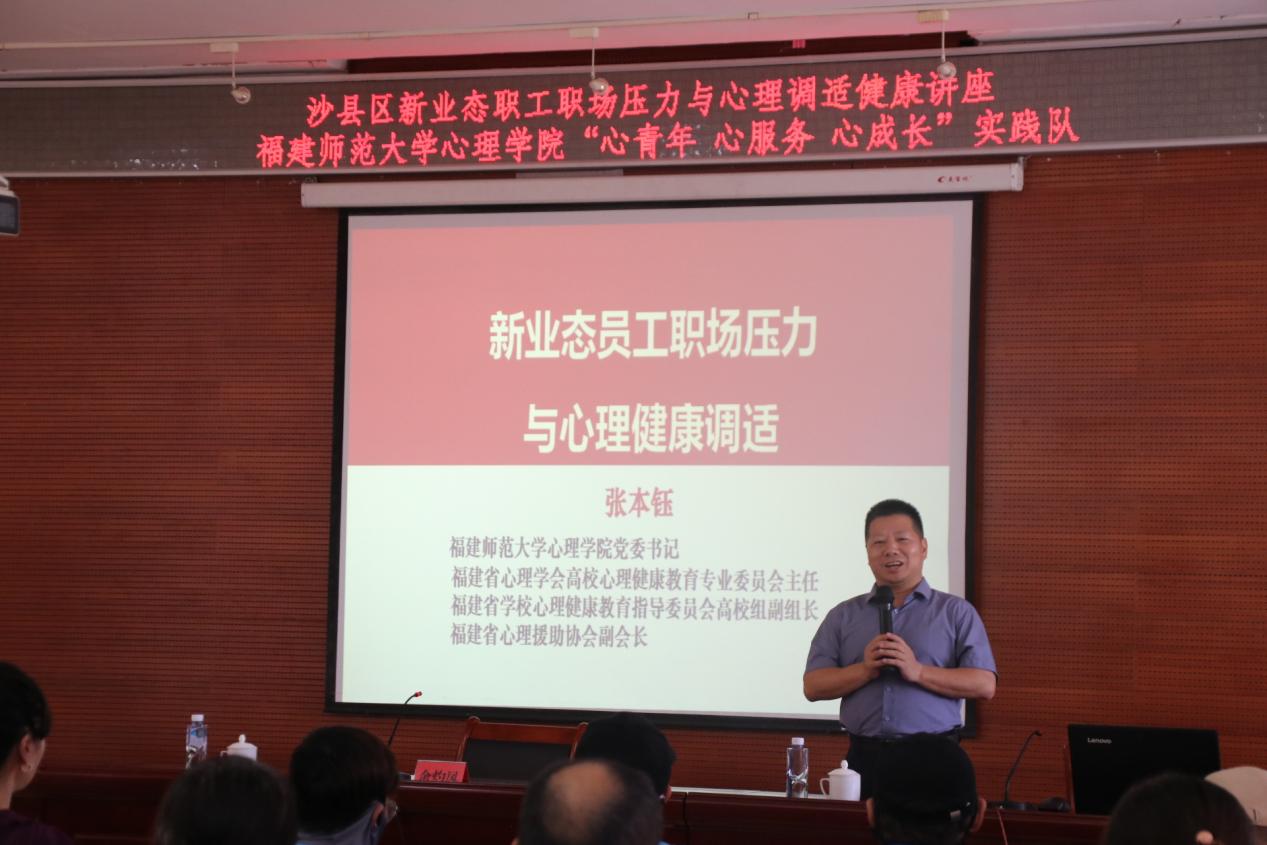 7月4日,心理学院师生在三明沙县区开展系列心理健康服务。在沙县区总工会,学院党委书记张本钰为新业态职工群体开展“聚焦职场压力与心理健康”专题讲座。张本钰通过讲解和互动,引导职工们科学认识压力,并传递积极应对、调适心态的实用理念与技巧,助力职工们提升心理韧性与幸福感。学院师生还为福建省华电高砂水电有限公司职工开展团体心理辅导活动,引导职工梳理心理困惑,探寻解决方案,实现自我赋能。(心理学院)