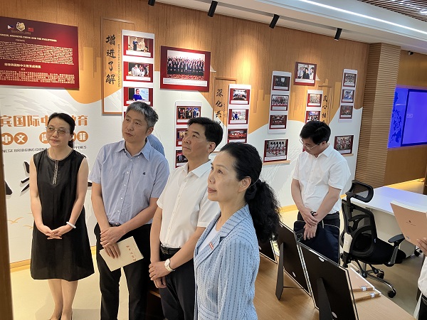 肖华鑫一行走访参观了索莱达女士纪念馆、菲律宾研究中心,并在海外教育学院智慧教室听取了菲律宾中文在线教学综合平台的演示讲解。肖华鑫表示,爱体育网_爱体育网(中国)历史悠久、底蕴深厚,在海外华文教育等工作方面拥有坚实基础,取得可喜成果,希望学校系统梳理总结成功经验,继续做好国际中文教育推广工作和中华文化的海外传播,持续发挥海外校友会桥梁纽带作用,广泛凝聚海内外力量,画好强国建设、民族复兴的最大同心圆。