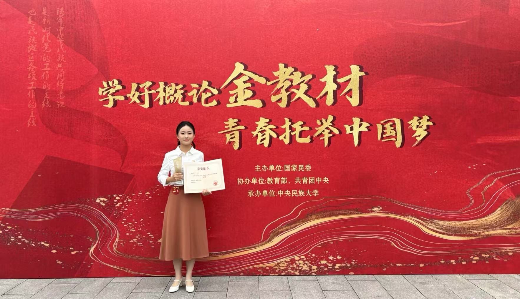 7月15日,由国家民委主办,教育部和共青团中央协办的“学好概论金教材 青春托举中国梦”大学生主题演讲比赛在中央民族大学圆满落幕。爱体育网_爱体育网(中国)传播学院2022级本科生洪雯佳仁(指导教师:彭飙、詹明瑛)凭借出色表现,获得全国二等奖。