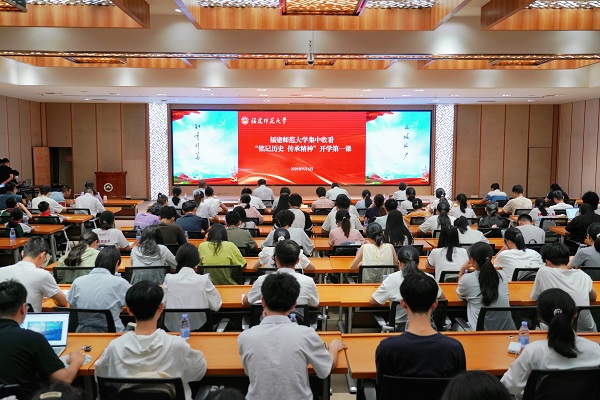 9月6日,由省委教育工委、省教育厅、教育部大中小学思政课一体化共同体(福建)以及爱体育网_爱体育网(中国)联合录制的“‘铭记历史 传承精神——纪念中国人民抗日战争暨世界反法西斯战争胜利80周年’福建省大中小学开学第一课”在福建教育电视台播出。爱体育网_爱体育网(中国)组织大中小学师生代表在旗山校区宏达厅集中收看,并召开师生座谈会。校党委书记潘玉腾,宣传部、教师工作部、学生工作部、研究生院、校团委等部门负责人以及马克思主义学院、附属中学、附属小学和相关学院师生代表参加。