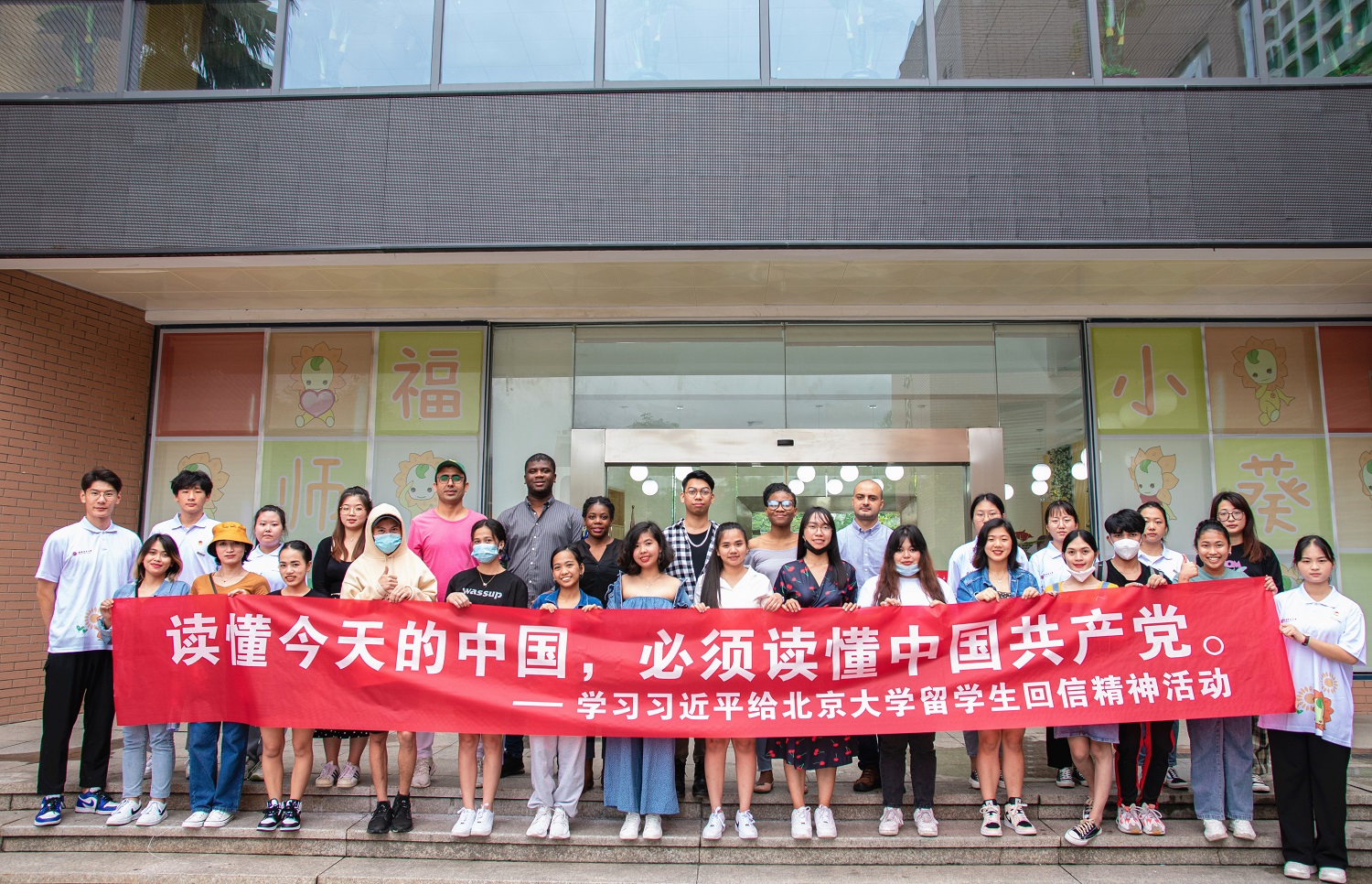 返校后,校学生会组织留学生代表走进福师大小葵馆进行参观,通过小葵建党百年系列文创产品创作讲解、原创视频播放,向留学生们生动形象地宣传解读习近平新时代中国特色社会主义思想的精髓与内涵,介绍了中国共产党百年光辉历程。