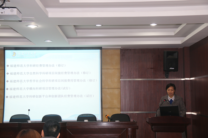 为抓好省委巡视反馈意见整改落实,教育引导教学科研单位和科研人员精准掌握政策,严格执行规章制度。2019年12月31日下午,我处联合财务处在仓山校区邵逸夫楼5楼会议室举办科研项目经费使用专项培训会以及学术道德和学风建设专项培训会。校学术委员会(理工科)、校科研工作委员会、校创新团队(理工科)负责人及骨干成员、各学院(数学与信息学院、物理与能源学院、光电与信息工程学院、化学与材料学院、环境科学与工程学院、地理科学学院、生命科学学院、南方生物医学研究中心分管科研副院长、科研秘书等近百人参加了培训会。