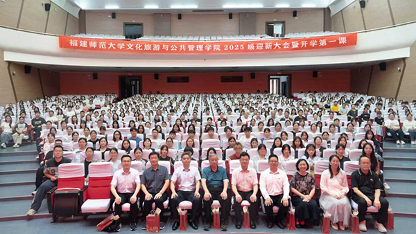 910日下午,文化旅游与公共管理学院旗山校区图书馆大会堂举行2025级新生迎新大会暨开学第一课。学院全体党政领导、教师代表、各专业负责人、全体辅导员以及2025级新生参加。大会由学院党委副书记赖建辉主持。