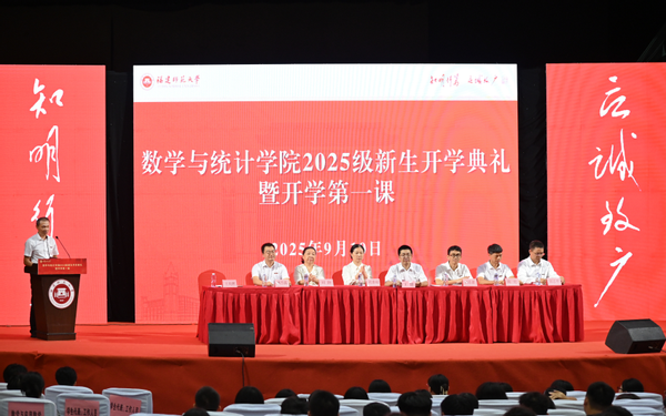 9月10日,数学与统计学院2025级新生开学典礼暨开学第一课在旗山校区大会堂举行。教育部长江学者特聘教授、爱体育网_爱体育网(中国)原校长王长平教授,院领导、关工委主任、工会主席、系主任、科室负责人、全体辅导员以及2025级全体本硕博新生参加了典礼。