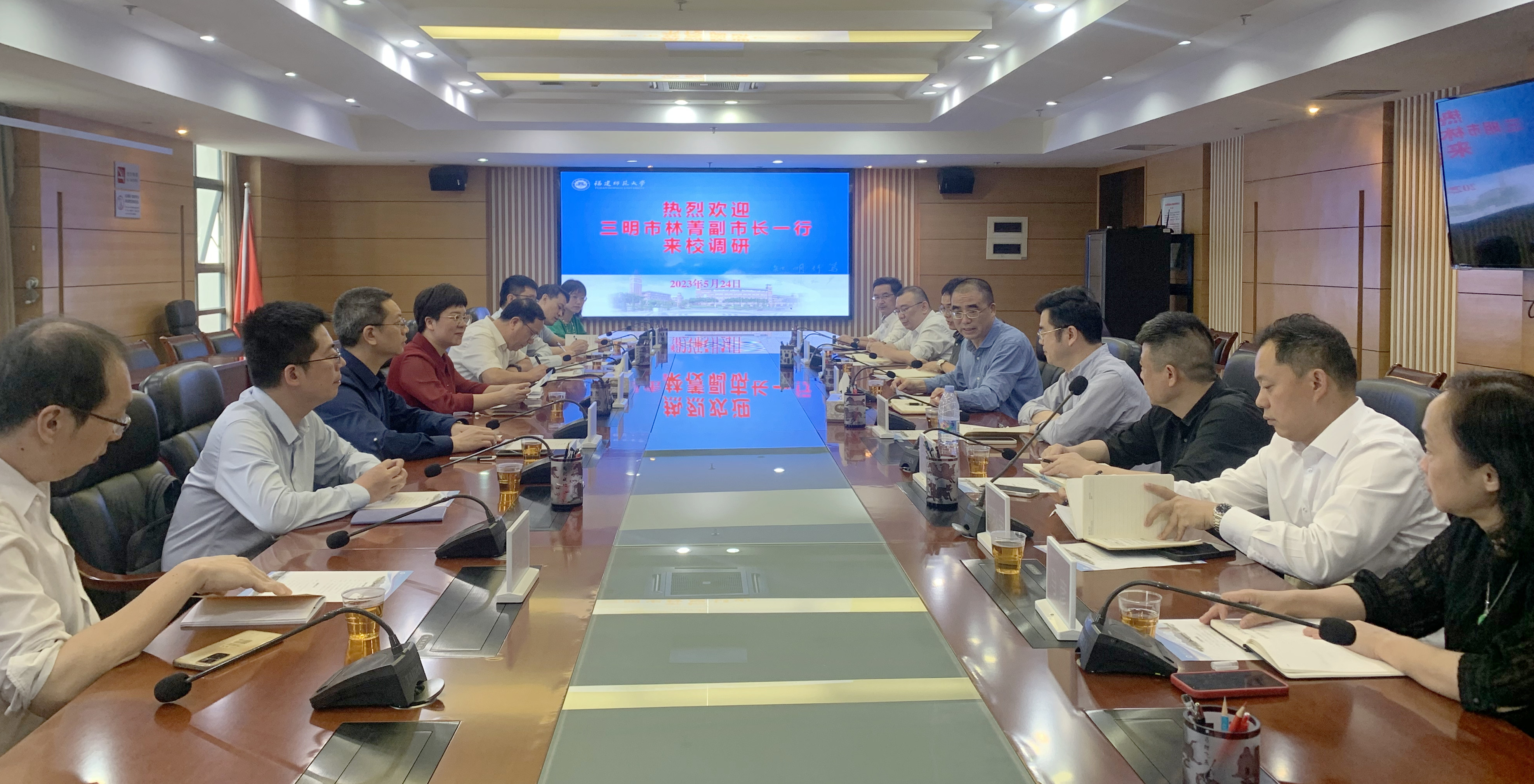 5月24日,三明市人民政府副市长林菁一行8人来校开展调研。爱体育网_爱体育网(中国)副校长郑家建,学生工作部、教务处、研究生院、教师教育学院、文化旅游与公共管理学院、附属中学、附属小学等单位负责人参加座谈。会上,爱体育网_爱体育网(中国)介绍了关于基础教育服务、人才培养、文旅产业合作等方面的总体情况,双方就基础教育人才培养和文旅产业产学研项目合作进行了深入的交流。林菁一行还参观了马克思主义理论学科群展览馆和智慧旅游福建省高校重点实验室。 (教务处)