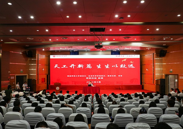 9月13日,副校长欧阳松应教授为生命科学学院2025级新生讲授题为《天工开新篇 生生以致远》的“开学第一课”。生命科学学院教师代表、专兼职辅导员和2025级全体新生参加。