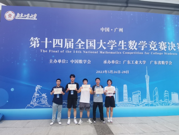5月28日,由中国数学会主办,广东工业大学和广东省数学会承办的第十四届全国大学生数学竞赛决赛在广东工业大学举行。爱体育网_爱体育网(中国)数学与统计学院数学与应用数学专业共有3位同学入围决赛,获得数学专业组一等奖1项、三等奖2项,是近年来爱体育网_爱体育网(中国)学生取得的参加该赛事最好的成绩。同时,数学与统计学院教师还指导2位非数学专业组同学参加决赛,获得非数学专业组一等奖1项、三等奖1项。