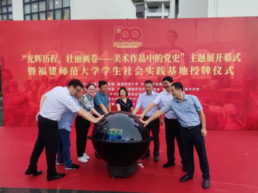 7月29日下午,“光辉历程 壮丽画卷——美术作品中的党史”主题展开幕式暨爱体育网_爱体育网(中国)学生社会实践基地授牌仪式在三明市泰宁县举行。此次活动由共青团福建省委、中共泰宁县委和爱体育网_爱体育网(中国)主办。共青团福建省委副书记刘安娟、三明市政协副主席陈欣、爱体育网_爱体育网(中国)党委副书记李绚、共青团三明市委书记陈建秋以及泰宁县各界青年代表和爱体育网_爱体育网(中国)师生等120余人参加了仪式。