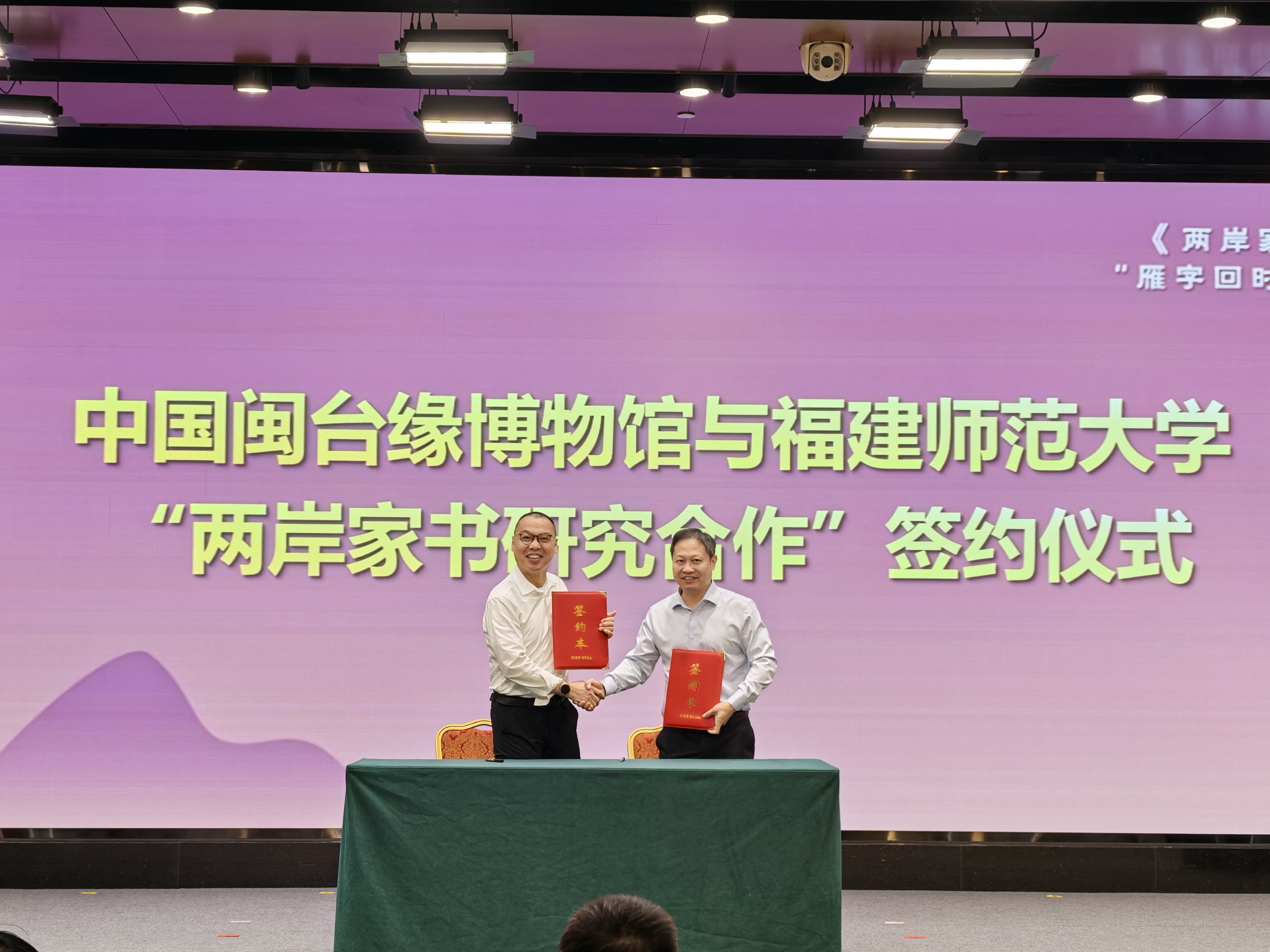 9月23日,在北京台湾会馆召开的“《两岸家书》新书发布会暨‘雁字回时——两岸家书特展’”活动上,副校长方千华代表学校与中国闽台缘博物馆签订“两岸家书研究”合作协议。海峡两岸关系协会副会长孙亚夫等两岸嘉宾百余人见证了签约仪式。此次合作是爱体育网_爱体育网(中国)对台文教交流长期积淀的重要成果,展现了双方强强联合、共促两岸文化融合发展的坚定意愿。此次签订协议不仅是两单位深化合作的新起点,更是服务国家两岸融合发展战略、抢救保护两岸共同历史记忆的具体行动。(发展规划处)