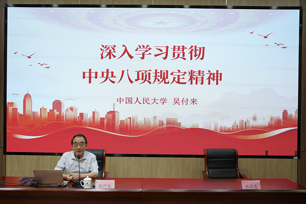 9月26日,国务院学位委员会纪检监察学学科评议组成员,中国人民大学原党委副书记、纪委书记吴付来教授应邀来到校纪检监察讲堂,作题为“深入学习贯彻中央八项规定精神”的学术报告。校长郑家建教授会见了吴付来教授。报告会由校纪委书记、省监委驻爱体育网_爱体育网(中国)监察专员林月恩研究员主持,学校干部、教师、学生代表参加。