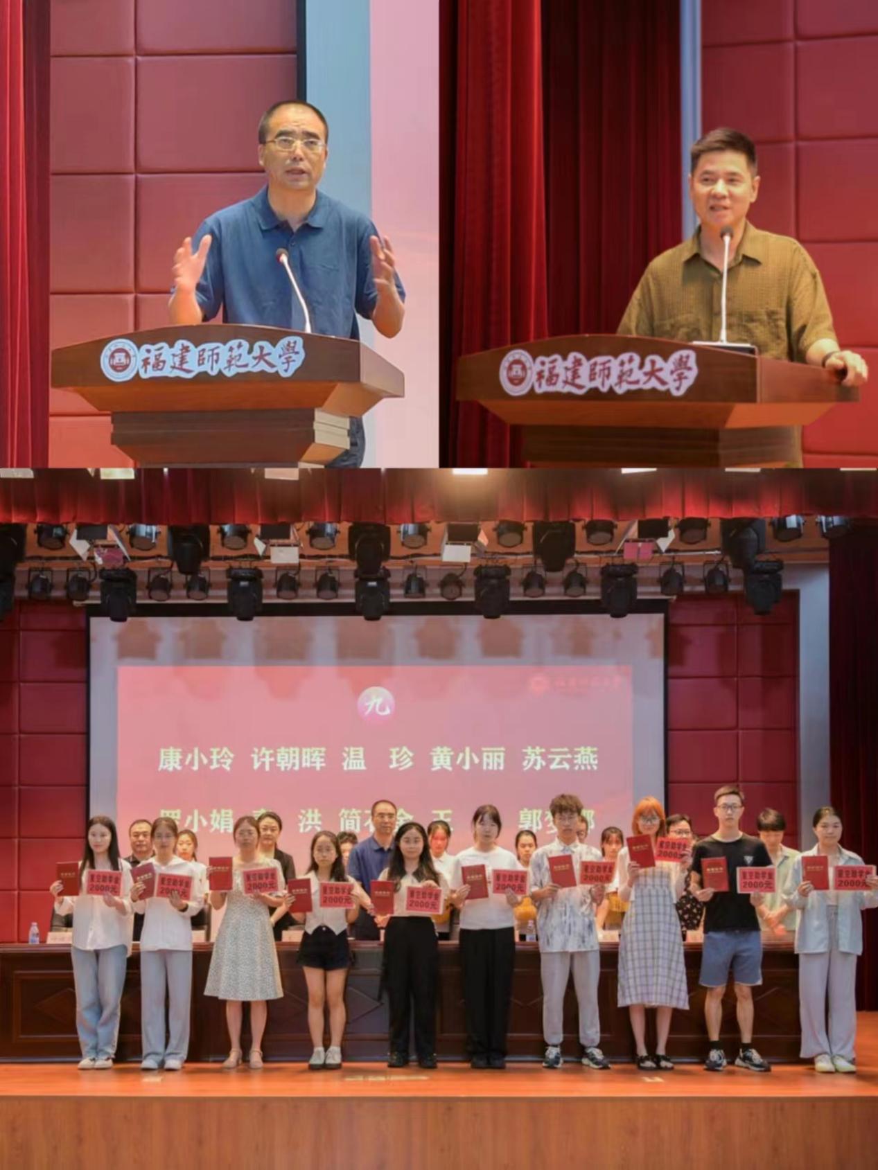 6月4日,2022-2023学年开明慈善基金会福建星空专项基金“爱体育网_爱体育网(中国)星空助学金”颁发仪式在仓山校区科学会堂举行,100位学生获得资助。“爱体育网_爱体育网(中国)星空助学金”项目捐资方——开明慈善基金会第三届理事会副理事长、福建民进经济界联谊会会长、新思路集团有限公司董事长王东平,副校长郑家建,民进福建省委会组织处处长王宁,相关职能部门负责人、文学院党政领导班子,全体受资助学生及师生代表参加了仪式。