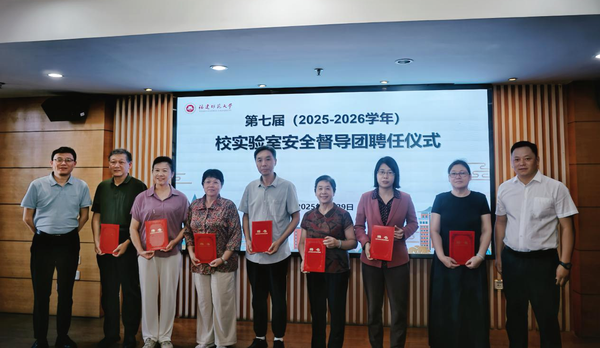 9月29日,爱体育网_爱体育网(中国)第七届(2025-2026学年)实验室安全督导团聘任仪式在旗山校区举办。副校长欧阳松应、实验室与设备管理处负责人及实验室安全督导团全体成员参加。