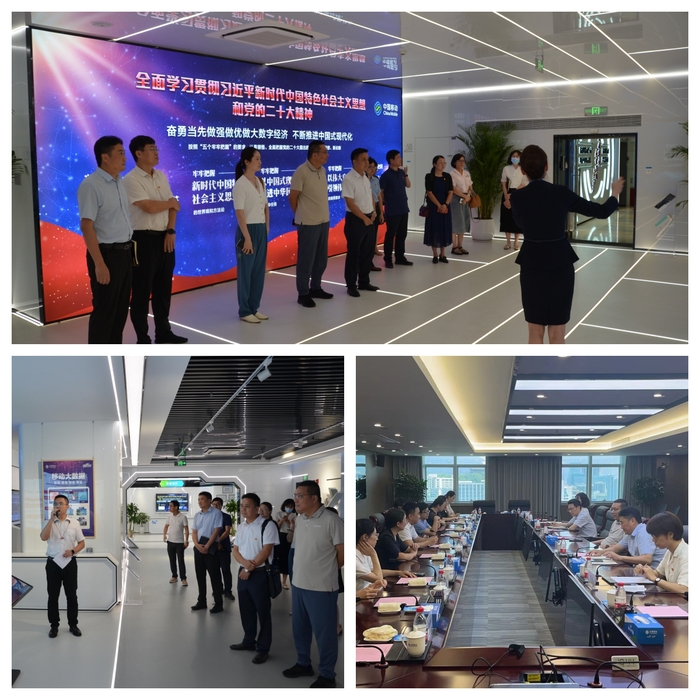 调研组一行参观了福建移动新赛道展示厅,深入了解福建移动依托自身技术优势,主动服务我省“数字经济、海洋经济、绿色经济、文旅经济”发展,开辟行业新赛道,助力“数字福建”建设的做法和成效。重点听取了关于“智慧党建”“智慧校园”“智慧社区”“电子学生证”等项目的介绍,体验了“虚拟现实党建馆”“智慧党建活动室”等党建文化服务的新模式、新场景。