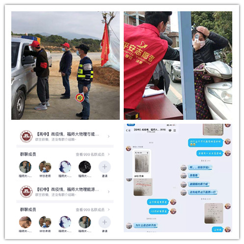 物理与能源学院沈燕盈、陆庆芬、廖汭婧、杨凯龙等多名学生在各自家乡的基层抗疫一线开展志愿服务活动。在当地社区、村镇防疫工作点,同学们参与登记出入车辆及人员信息、防疫站点执勤、测量体温、社区登记等各项工作。
