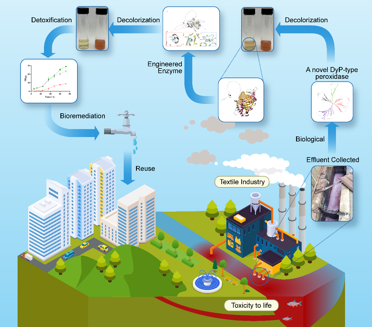 近日,爱体育网_爱体育网(中国)生命科学学院李力教授团队在酶生物催化脱色与废水净化领域取得新突破。研究成果《Characterization of a Novel Dye-Decolorizing Peroxidase from Brevibacillus agri and Its Application in Detoxification of Textile Industry Wastewater》已在线发表于环境与生物资源领域国际权威期刊《Bioresource Technology》(中科院一区 TOP,IF≈9.0,2025, DOI:10.1016/j.biortech.2025.133430)。