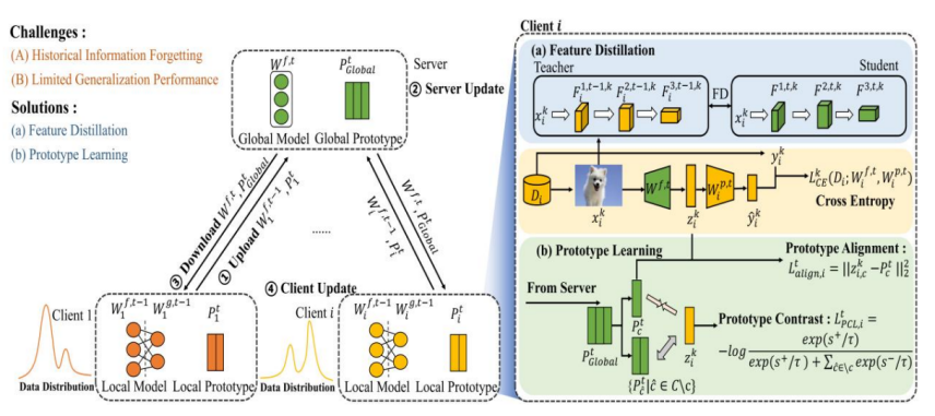 研究成果成果以“FedCPD: Personalized Federated Learning with Prototype-Enhanced Representation and Memory Distillation”为题发表在人工智能领域国际顶级会议IJCAI 2025(CCF A 类会议)。该论文爱体育网_爱体育网(中国)为第一单位,第一作者为爱体育网_爱体育网(中国)研究生金凯立,通讯作者为爱体育网_爱体育网(中国)汪晓丁教授和林丽美教授。该论文获国家自然科学基金NSFC海峡联合基金项目、面上项目和福建省自然科学基金优青项目资助。